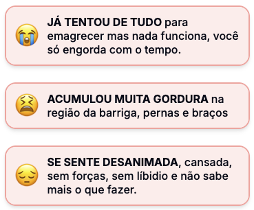 👉🏼 Porque tudo o que você tentou não foi feito para mulheres na menopausa. Dietas e exercícios comuns não resolvem o verdadeiro problema: seus hormônios desregulados travaram seu metabolismo.