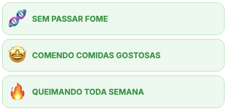 👉🏼 Em 30 dias, você pode eliminar até 5kg de forma definitiva, sentindo seu corpo mais leve, sua energia voltando e sua fome descontrolada reduzindo.